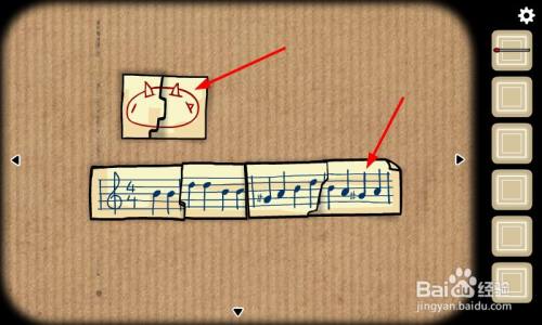 利用布胶带碎片拼凑图案,可以得到芒果图案以及曲谱线索。