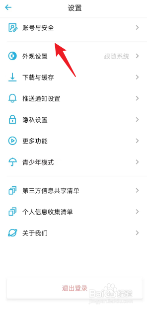 进入到设置菜单栏中,点击账号与安全选项。