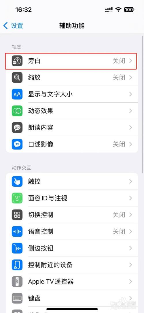 点击打开【旁白声音与触感】选项。