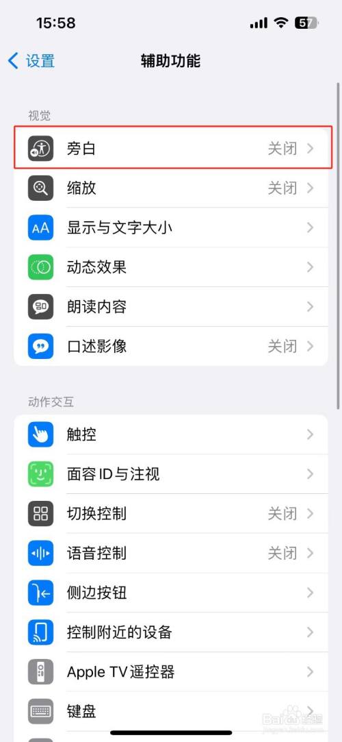 点击进入【旁白声音爱册边与触感】选项。