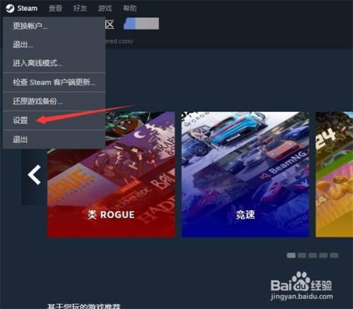 进入steam首页后,在最上方的灰色小字菜单栏点击【Steam】。