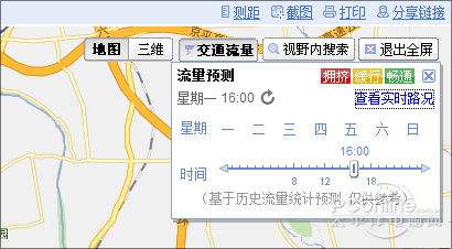 除了及时流量外,百度地图另有一个厉害之处就是可以举行流量预测。固然这个预测可不是瞎测,而是按照之前的流量记载推算而来(好比周五放工时间必定比周六放工时间更拥堵)。虽然这项功效带有必然的偶尔性,但要是用作制订将来某天的出行摆设照旧很实用的。