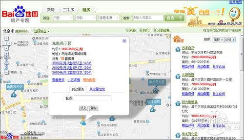 除了新居以外,百度地图也能供给二手房及租房方面的查询。就拿租房为例,我们便可经由过程顶端栏提前设定好详细的户型、均价信息,然后点击"百度一下"执行搜刮。和新居搜刮一样,租房模块同样撑持视野内主动筛选功效,可以或许主动显示出当前规模内的所有出租信息。而在随后的链接中,体系还会显示出该房源的实景照片及户型图,可以或许最大水平上为租房者供给参考。(租房搜刮)