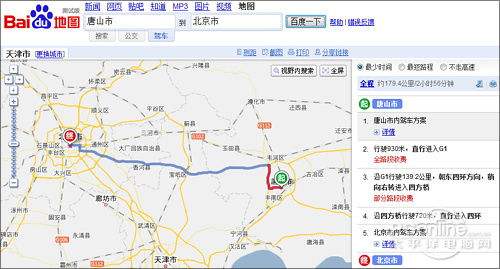 以往驾车路线往往局限于统一都会,用于省际旅游行不行呢?以唐山到海说神聊京为例,试着在"驾车"标签下输入了"唐山"与"海说神聊京"两个名称,击打回车后一个跨省驾车路线便迅速弹了出来。和市内规同等样,跨省路线也是分为"最小时间"、"最短旅程"、"不走高速"三种选择的,人道化方面不错。并且笔者发明无论哪种驾车方案,市内线路都是主动隐蔽,只有点击才能将其睁开显示,既提高了线路层次性,也不会对读取带来几多贫苦。(跨省旅行)