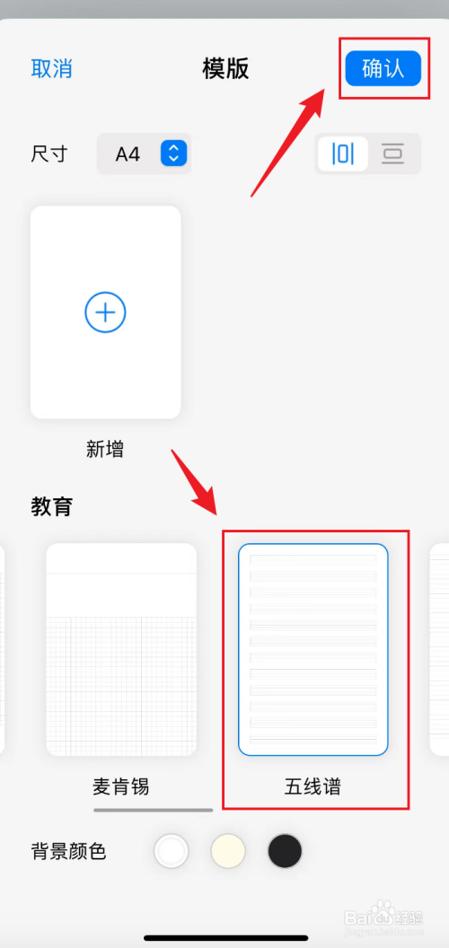 往右滑,选择下面的五线谱,点击右上角的【确认】。