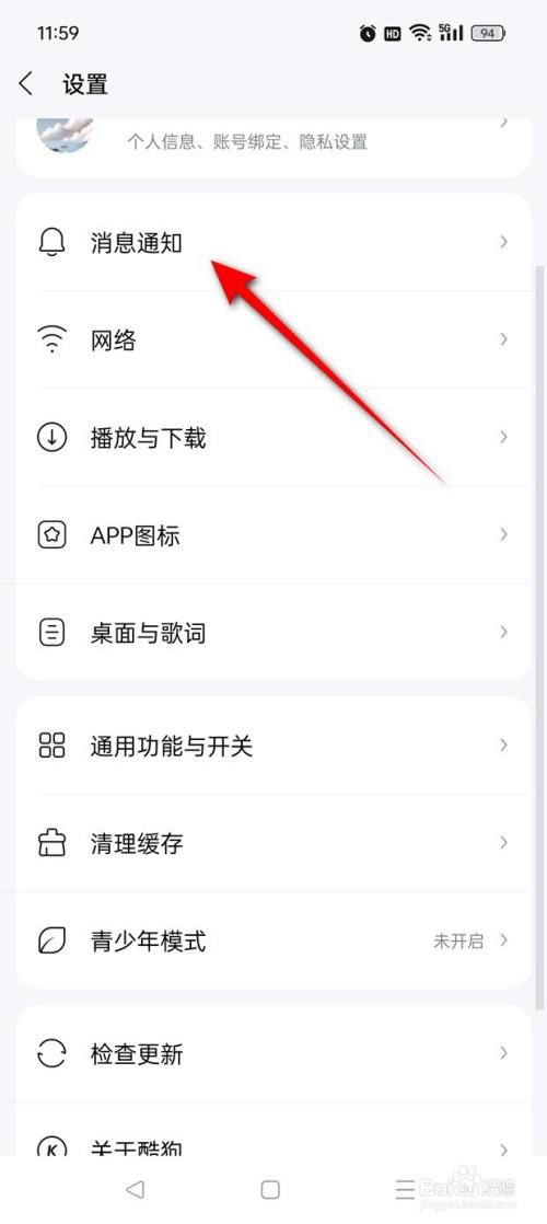 将"K歌作品互动通知"旁的小滑块点亮即可开启,此时点击小滑块。