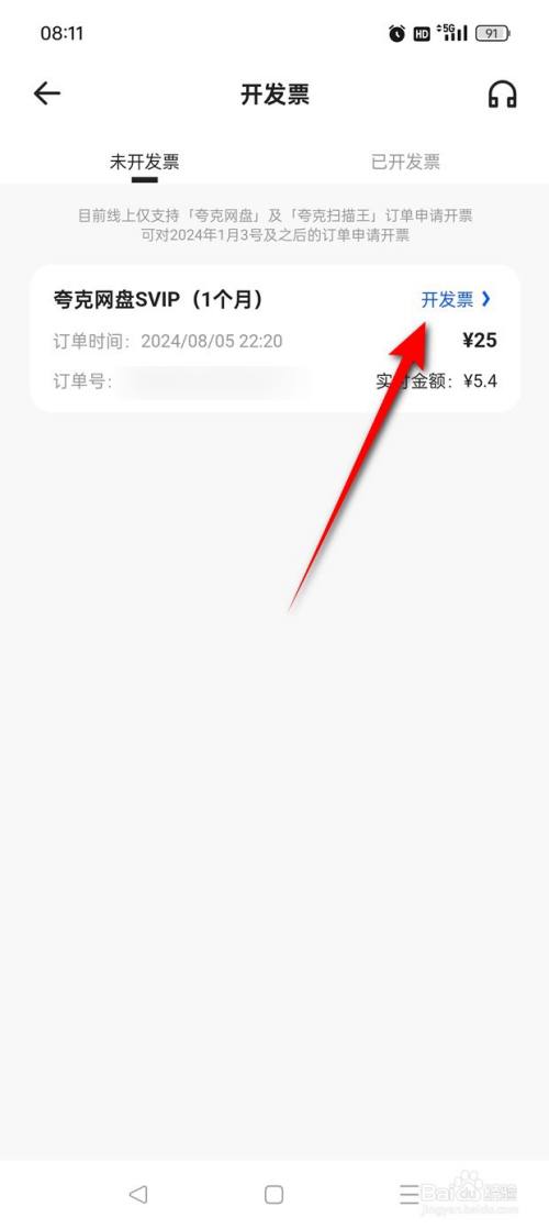 点选一个订单,点击"开发票"。