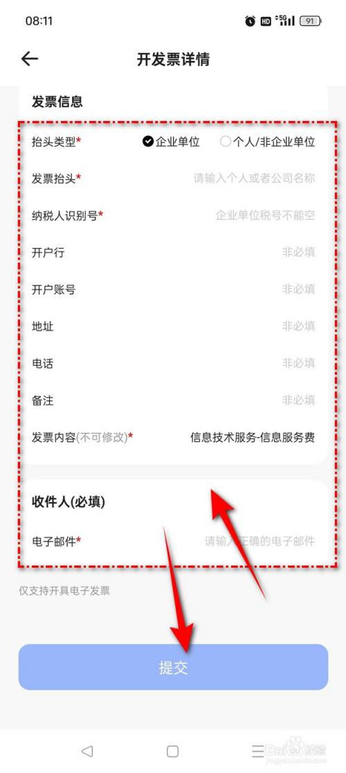 完美发票信息,点击"提交"即可乐成开具发票了。