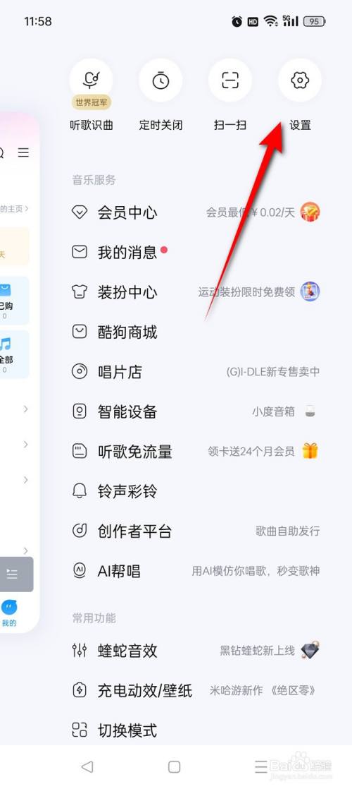 打开酷狗音乐"我的"页面,点击右上角的三横图标。