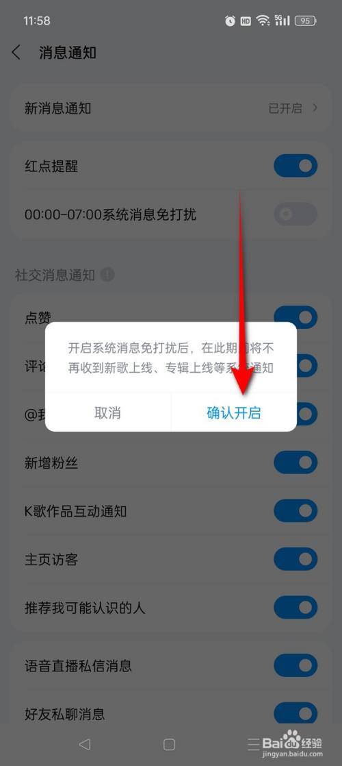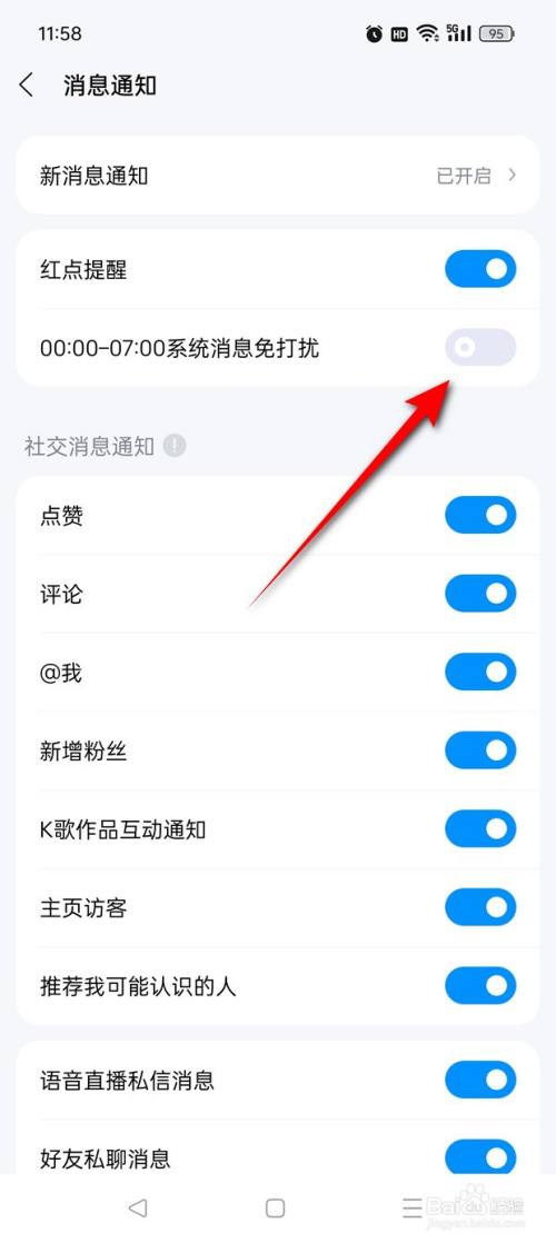 将"0:00-07:00体系动静免打搅"旁的小滑块点亮即可开启。