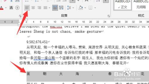 选中内容后,选中其他的对齐方式,好比左对齐召粒