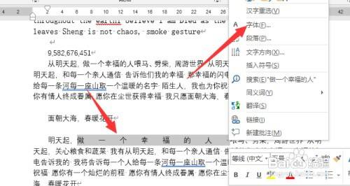 文字之间有空格去不失另有一个环境是设置了交较宽的字间距,选中内撤墨容后,央沫裹右击鼠标,点击"字体"