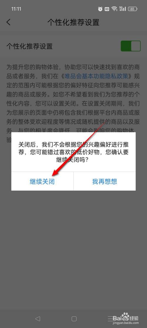 将"个性化保举设置"旁的小滑块点暗即可封闭。
