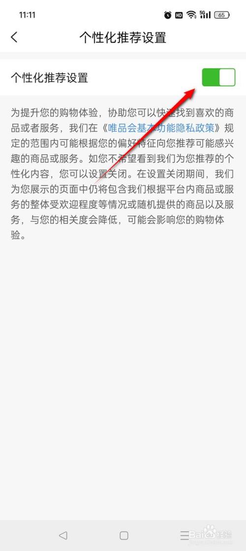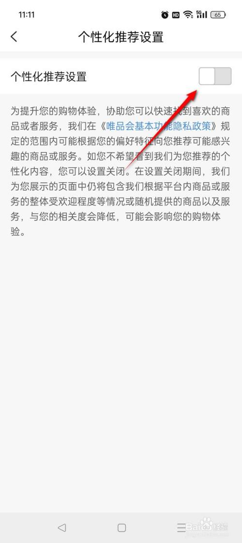 将"个性化保举设置"旁的小滑块点亮即可开启,此时点击小滑块。