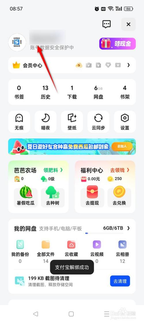 点击"解绑"淘宝账号。
