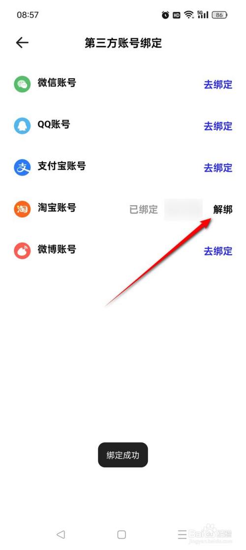 点击"去绑定"淘宝账号。