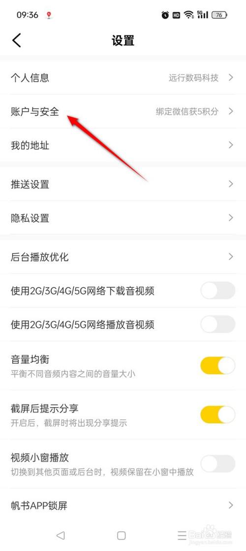 点击"账户与安全"。