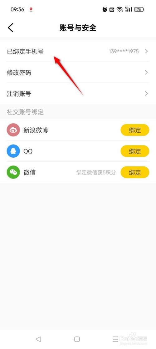点击"已绑定手机号"。
