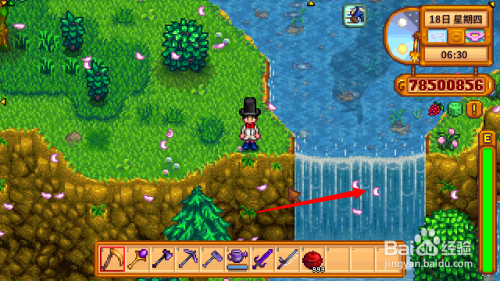 面岌岌可危瀑布底部的偏向,拿出垂钓竿蓄力抛出。
