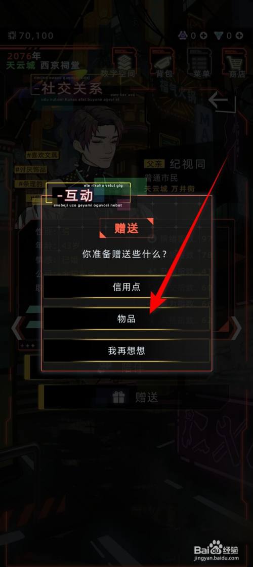点击"物品"。