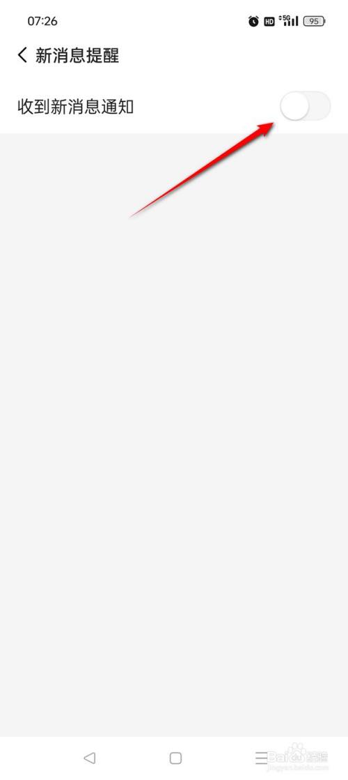 将"收到新动静通知"旁的小滑块点暗即可封闭,此时点击小滑块。