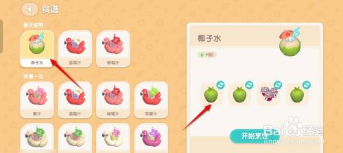 将食材替代为2个椰子、蓝莓果酱及蓝莓汁各一份,点击"起头烹调"。