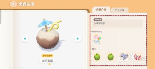 由图鉴可知:蓝色海岸需利用冷饮摒挡车用椰子2个、蓝莓果酱及蓝莓汁各一份烹制得到。