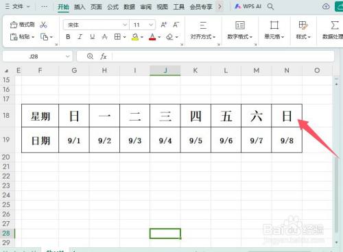 查看Excel表格按照日期计较礼拜的效果。