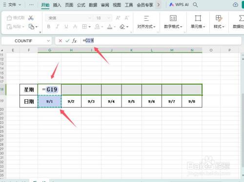 在上方输入公式【=G19】,G19暗示日期的单位格,按下【CTRL】+回车键。