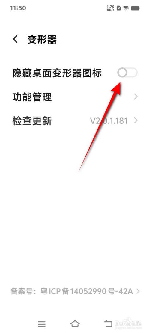 将"隐蔽桌面变形器图标"旁的小滑块点亮即可开启。