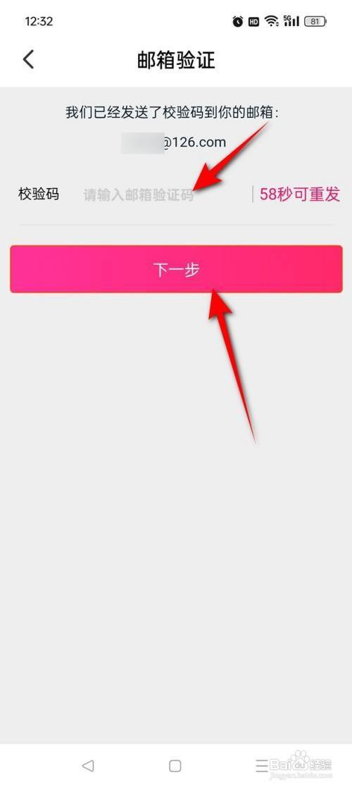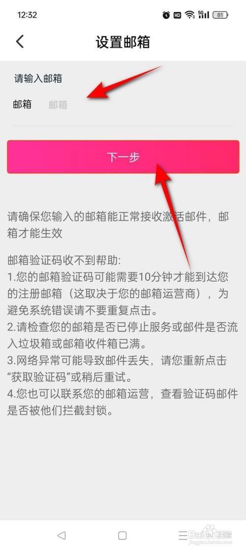 六,将收到的邮箱验证码填入,点击"下一步"即可乐成绑定邮箱。