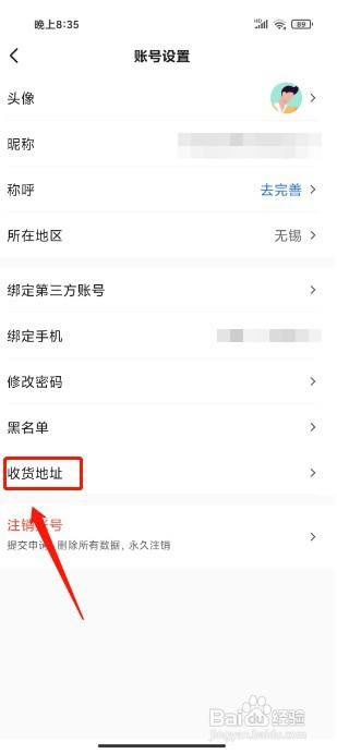 进入账号设置,点击"收货地址",如图所示