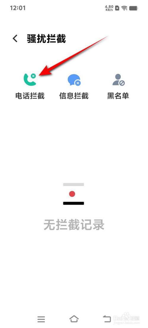 将"拦截生疏号码来电"旁的小滑块点暗即可封闭,此时点击小滑块。