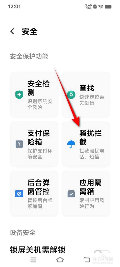 打开IQOO手机设置页面,点击"安全"图标进入。