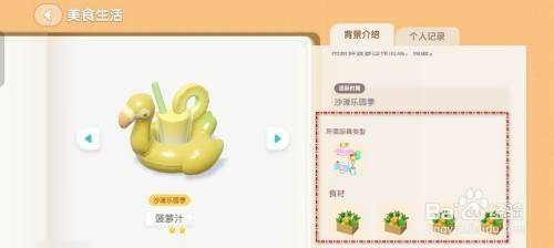 由图鉴可知:菠萝汁需要使用冷饮摒挡车用四份菠萝榨汁得到。