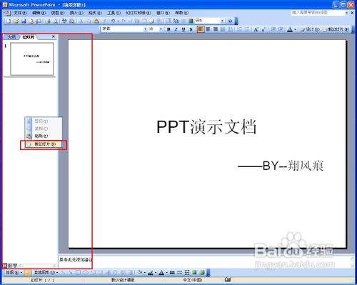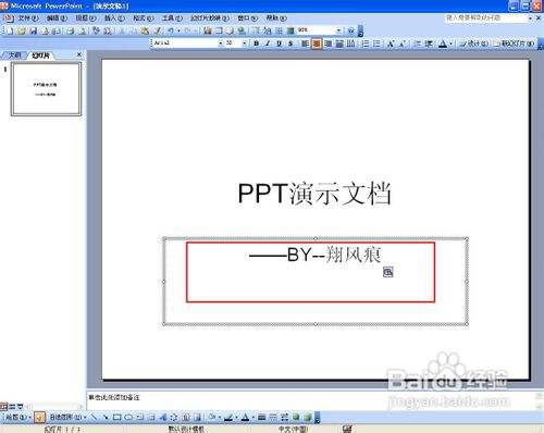 如图红框处事PPT的副标题,我们填入"BY--翔风痕"