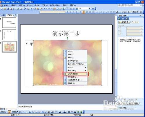 我们还可以给图片加一些动态效果,右键点击图片,在弹出的菜单中选择"自界说动画"
