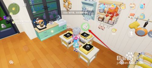 在心动小镇手游,来到灶台前,点击烹制图标。