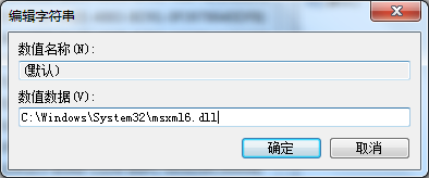 将数值数据%SystemRoot%\System32\msxml6.dll更改为C:\Windows\System32\msxml6.dll,改好后点击确定。