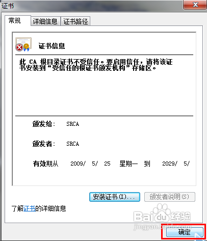 返回证书安装界面,点击"确定"完当作根证书安装。