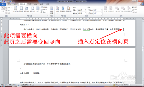 回到Word编纂页面,这时您会发明插入点之后的所有页面都已经酿成了横标的目的,这不是我们需要的成果,是以还需要继续举行设置。