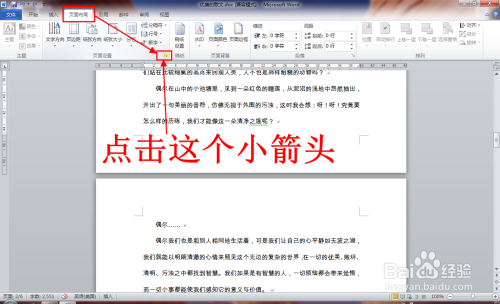进入"页面结构"选项卡,点击页面设置一栏右下角的小箭头。