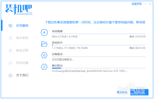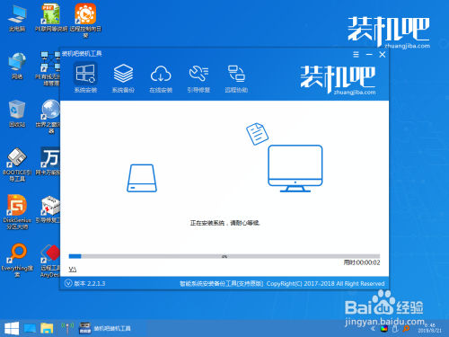 下载完后主动重启进入PE,起头安装体系。