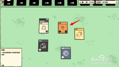 点击开局礼沃盆包,肯定得到村民和浆果灌木丛两张卡。始之