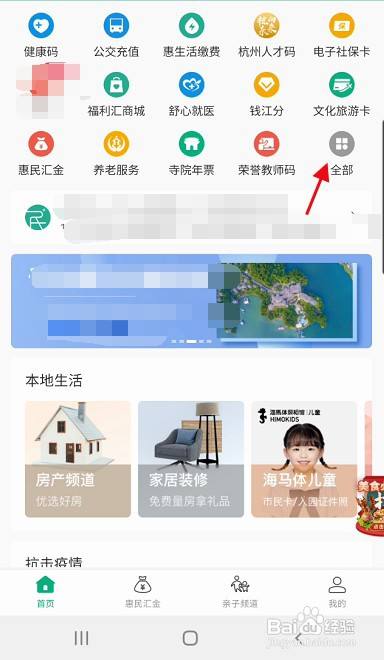 进入杭州市民卡首页,点击右上方的全数进入