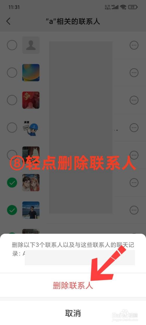 鄙人方就会呈现要害词相干的接洽人,想要批量删除,可以轻点更多接洽人。