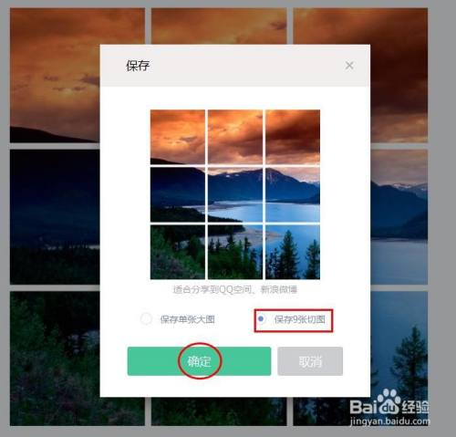 第六步:在弹出的"生存"对话框中,勾选上"生存9张切图",单击"确定"按钮,并选摘要生存的位置。