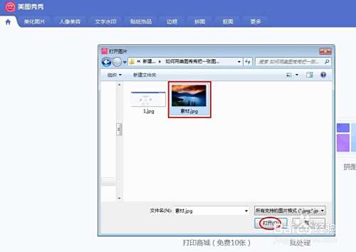 第二步:在弹出的打开图片对话框中,选择并打开一张需要支解的图片。