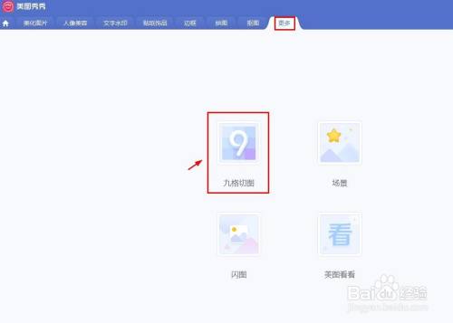 第三步:选择菜单栏"更多"中的"九格切图"。