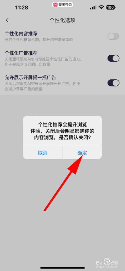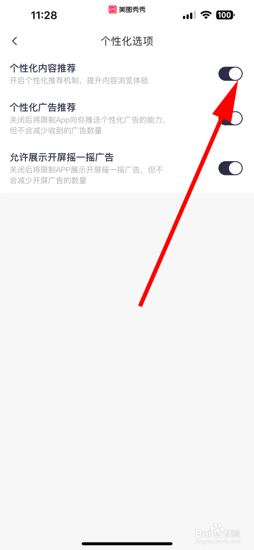 进入个性化选项界面找到个性化内容保举点击【开关】